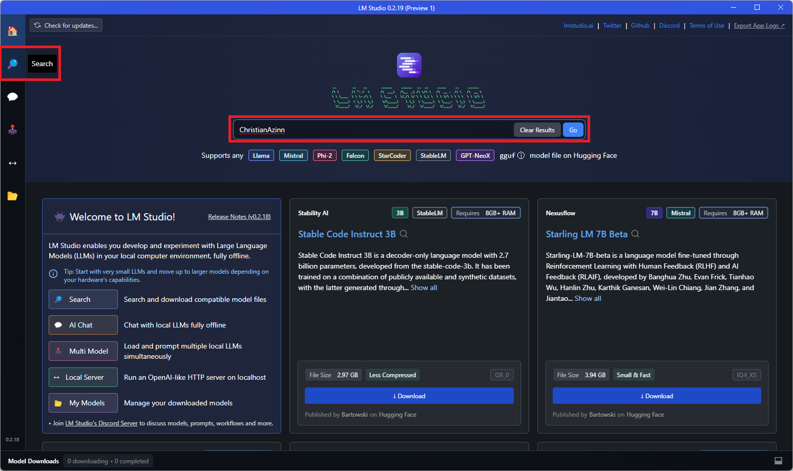 Search for either "ChristianAzinn" in the main search bar or go to the "Search" tab on the left menu and search the name there.