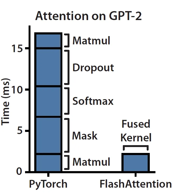 If we follow the blog Making Deep Learning Go Brrrr From First Principles, we can figure out that Attention module on current hardware is memory-bound/bandwidth-bound. The reason being that Attention mostly consists of elementwise operations as shown below on the left hand side. We can observe that masking, softmax and dropout operations take up the bulk of the time instead of matrix multiplications which consists of the bulk of FLOPs.