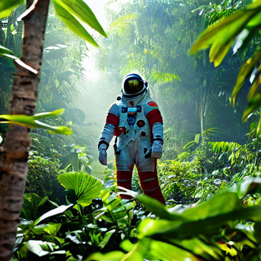 image = pipeline("Astronaut in a jungle, cold color palette, muted colors, detailed, 8k", generator=generator).images[0]