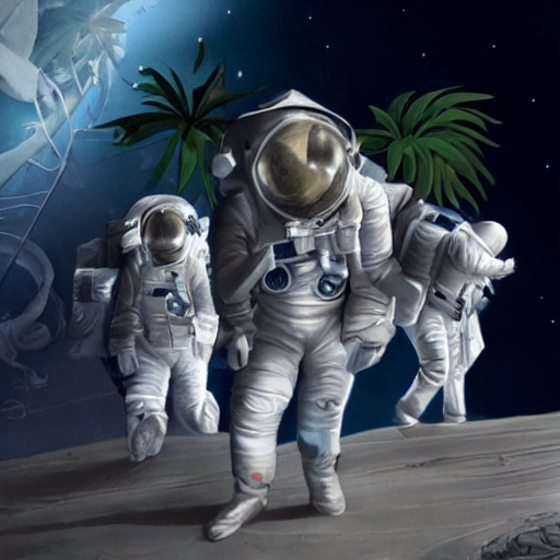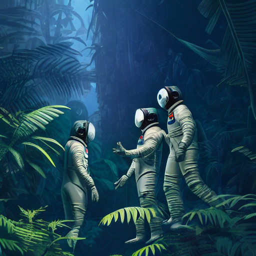 prompt = "Astronaut in a jungle, cold color palette, muted colors, detailed, 8k"
