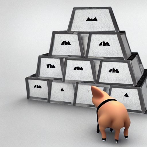 3d pig eats tiny pyramids in unreal engine render