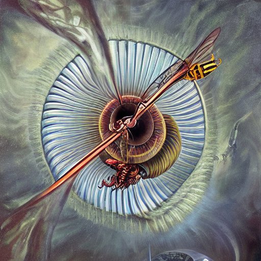 giant wasp queen of a turbine kingdom, , anatomically correct wasp turbine, hypnotic turbine ripples by Vincent GOngh, Matthew Smith, Mario Sanchez Nevado ,oil on canvas