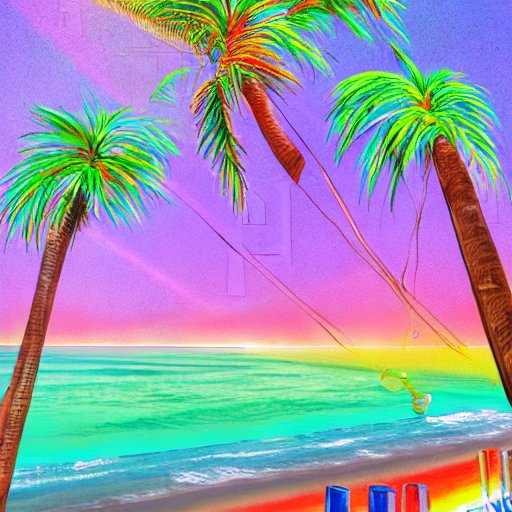 rainbow beach, palm trees, neon, miami